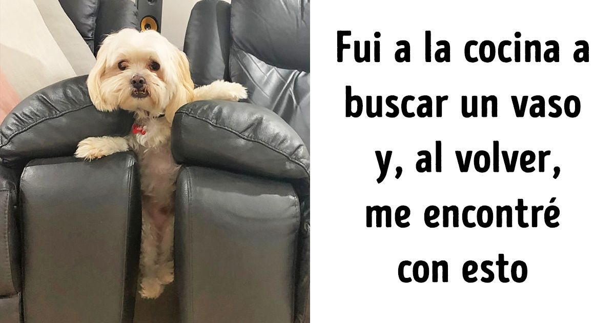 14. “Fui a la cocina a tomar una copa y, al volver, encontré esto... Sin ladridos ni nada, ¡solo se relajó!”
