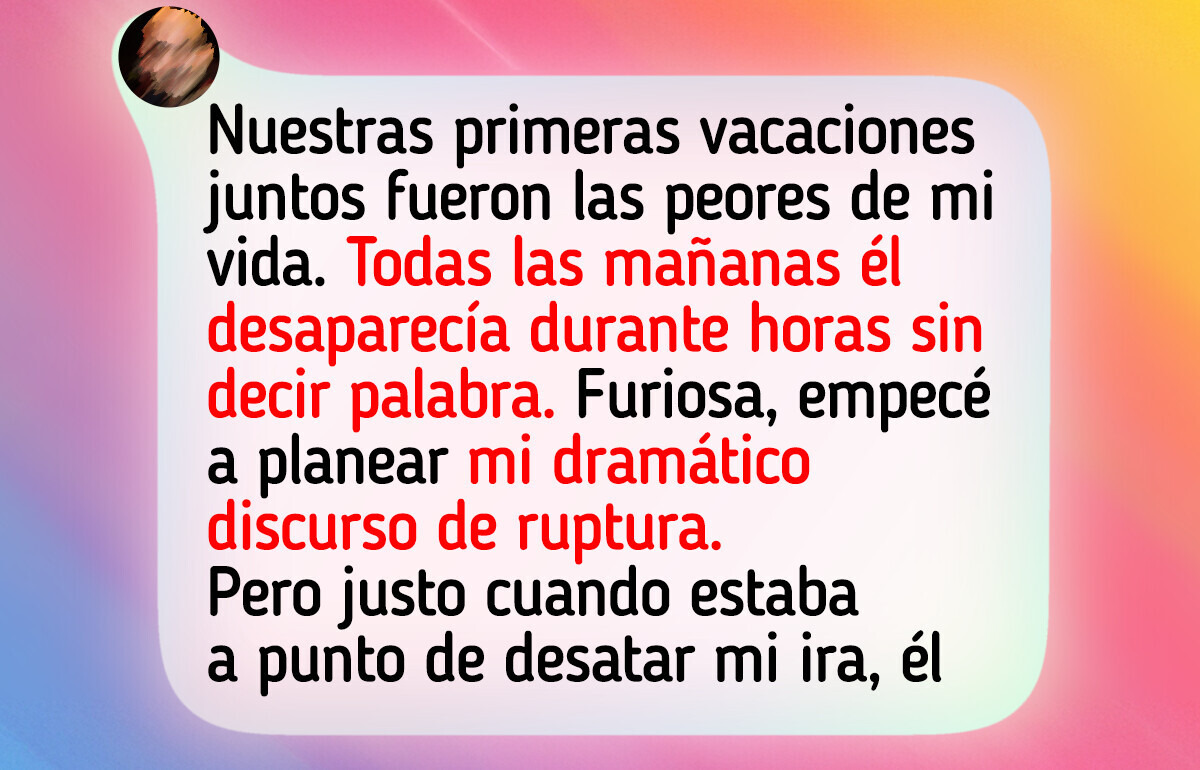 Nuestras primeras vacaciones juntos fueron las peores de mi vida. Todas las mañanas él desaparecía durante horas sin decir palabra. Furiosa, empecé a planear mi dramático discurso de ruptura. Pero justo cuando estaba a punto de desatar mi ira, él me sorprendió con un collar de perlas, cada una de las cuales había cazado cuidadosamente él mismo durante aquellas aventuras mañaneras.