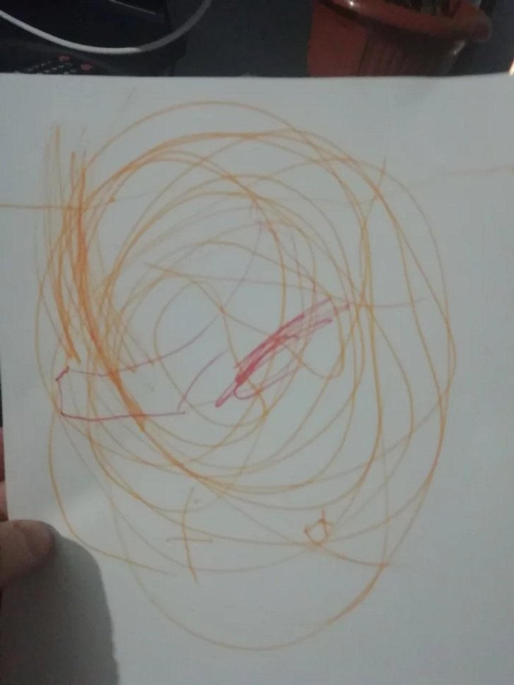 “Mi hija, de 5 años, lo dibujó antes de las fiestas. Dijo que era un perro. Refleja mi estado emocional a la perfección”
