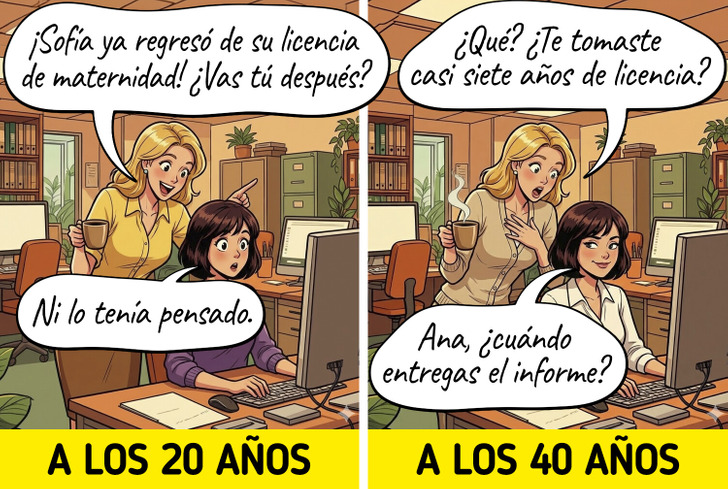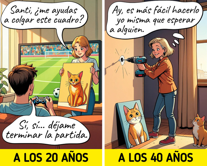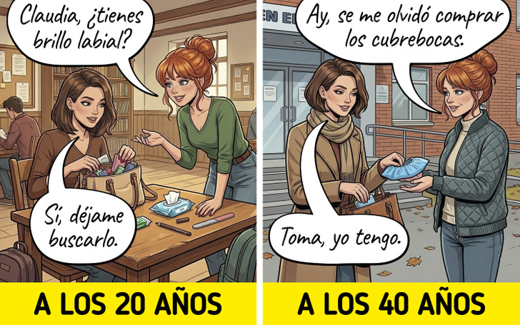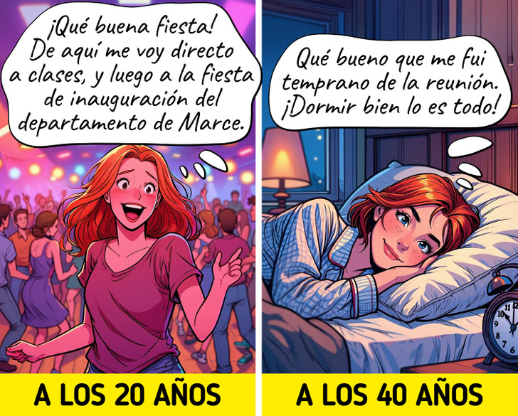 Cada etapa de la vida tiene su encanto, y los 40 no son la excepción. Es el momento en el que unos tenis cómodos, una buena noche de sueño y la rutina diaria te dan más alegría que las fiestas o la adrenalina. Y, por supuesto, en tu bolso siempre llevas todo lo necesario para cualquier imprevisto. Hemos preparado una serie de cómics ingeniosos y llenos de cariño que muestran lo mucho que pueden cambiar nuestras prioridades entre los 20 y los 40 años.