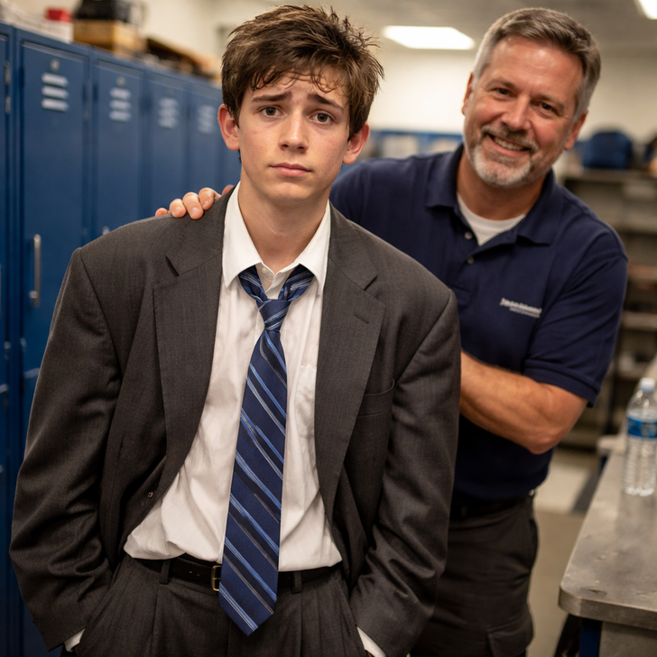 Un chico llegó a una entrevista en nuestro almacén con un traje al menos tres tallas más grande y con olor a naftalina. Estaba sudando y parecía querer desaparecer. En lugar de juzgarlo, mi gerente lo llevó al vestidor, sacó una camiseta limpia de la empresa, le dijo que el traje era “demasiado elegante para este trabajo sucio” y le ayudó a acomodarse el cabello. Le dio el trabajo. Luego me dijo: Cualquiera que se esfuerce tanto usando un traje tan incómodo merece un sueldo.
