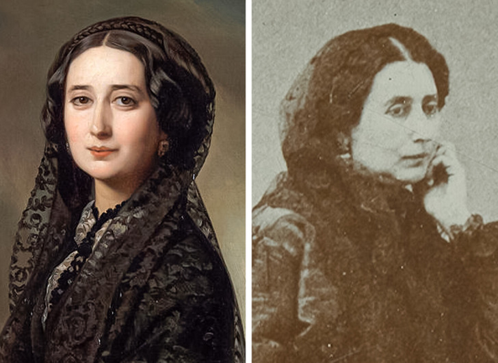 Así fue como el artista retrató a esta dama de la alta sociedad de las cortes francesas, y así la captó el fotógrafo.