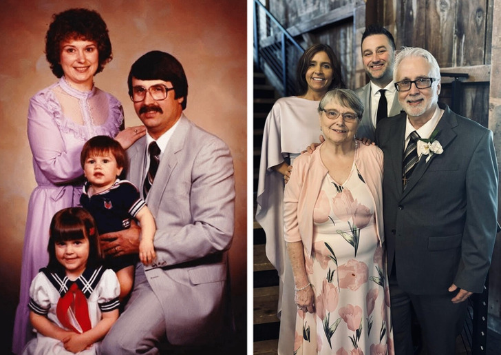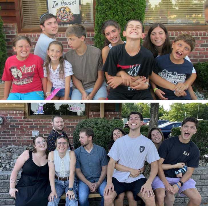 El tiempo es un gran narrador de historias. En estas fotos no vemos solo personas, sino relatos enteros que abarcan décadas. Parejas enamoradas, familiares y amigos de la infancia comparten sus imágenes de “antes y después” para mostrar cómo cambia la vida, pero no se rompe el lazo que los une. Es como asomarse a un álbum familiar ajeno: emocionante y un poquito nostálgico. Elegimos las capturas más cálidas y llenas de vida, en las que probablemente también te reconocerás.