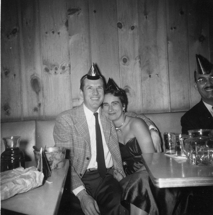 “Mis padres después de la fiesta de Año Nuevo en 1950”