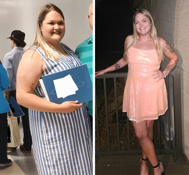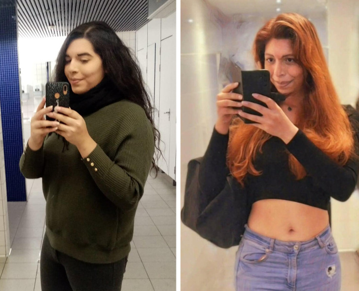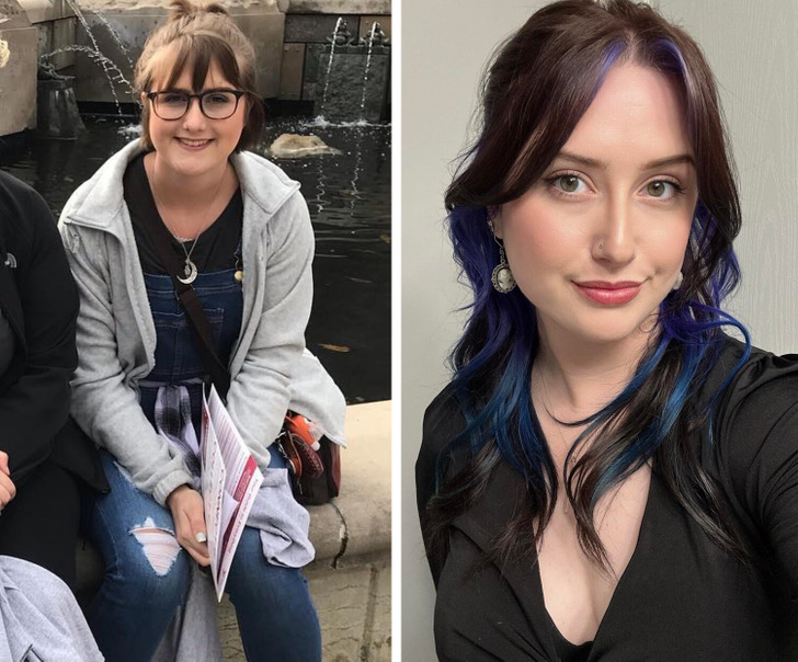 “Encontré la foto de la izquierda en mi teléfono. Recuerdo lo profundamente deprimida que estaba y lo duro que era cada día. Un año después, noto un gran cambio en mí”