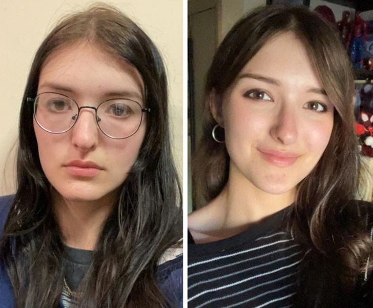 “Mi 18 cumpleaños en la universidad. Me sentía incómoda. La foto de la derecha es de este año”