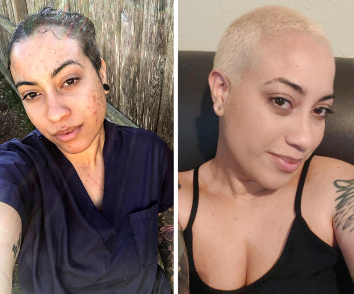 “La primera foto fue tomada a principios de 2020, aunque todo empezó dos años antes, tras mi divorcio. Y ahora el acné ha desaparecido hace meses”