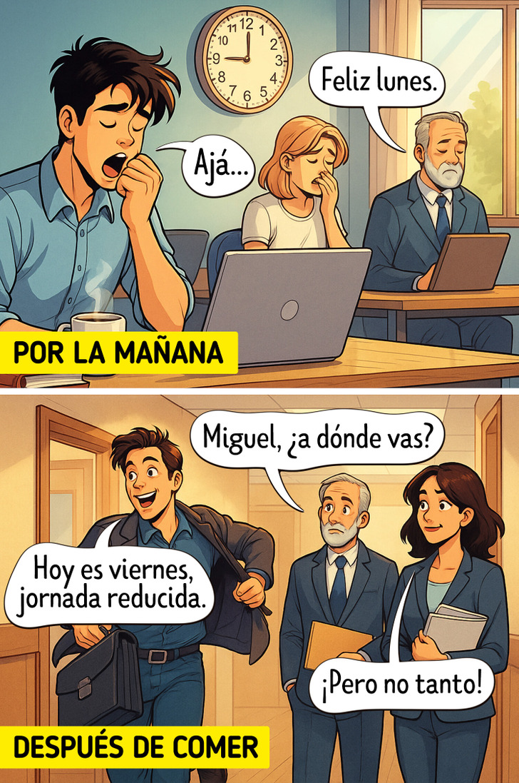Lunes por la mañana: el equipo bosteza. Viernes por la tarde: ya es prácticamente el fin de semana