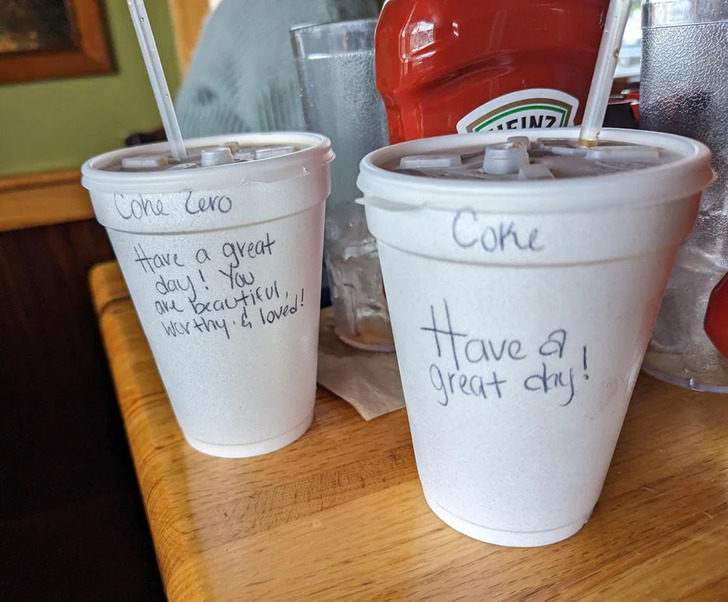 “La camarera escribió frases bonitas en nuestras bebidas.”