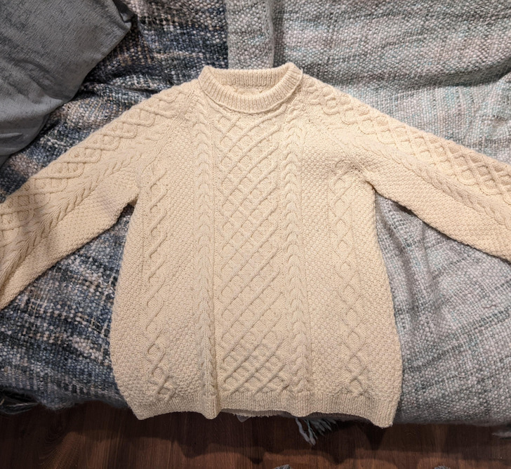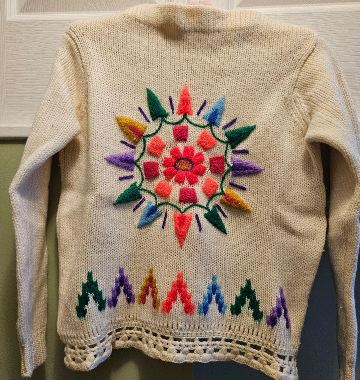 “Mi abuela tejía esta hermosa prenda para cada uno de sus nietos al cumplir 18 años. Hasta el día de hoy, sigue siendo mi posesión más preciada”