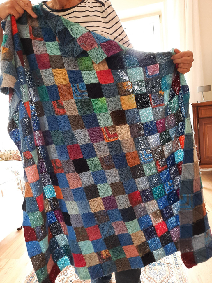 “La abuela está muy orgullosa de esta manta. Está hecha con recortes de calcetas de lana”