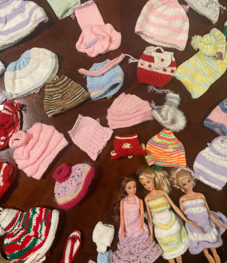“Mi abuela comenzó a tejer ropa para muñecas. Por su enfermedad ya no puede seguir patrones ni moldes, pero aún lo hace con el corazón”