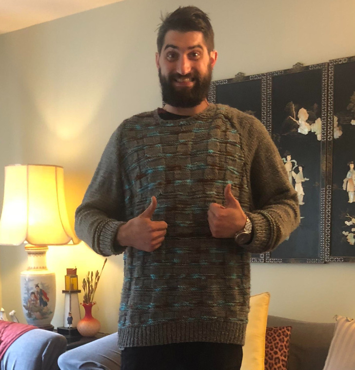 “Ahora también me convertí en el feliz dueño de un suéter hecho por mi abuela.”