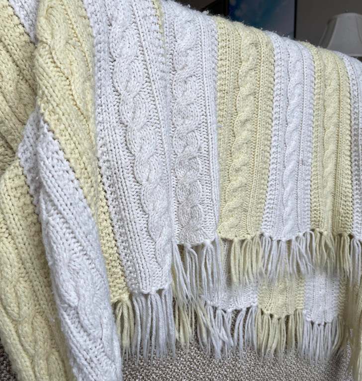 “Hace poco falleció mi querida abuela. Le encantaba tejer mantas para la familia. Esta me la hizo hace casi treinta años”
