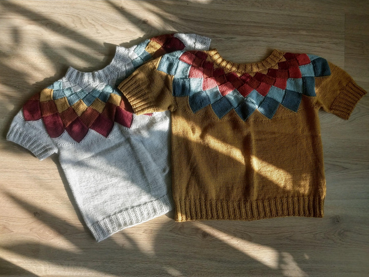 “Y la mía acaba de terminar de tejer esta hermosura. No usa patrones, así que teje como se le antoja.”