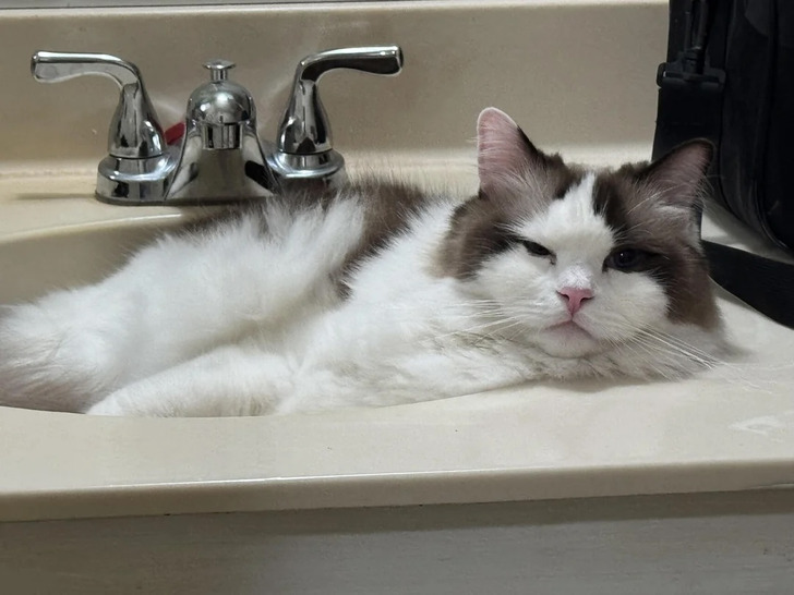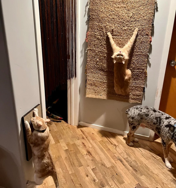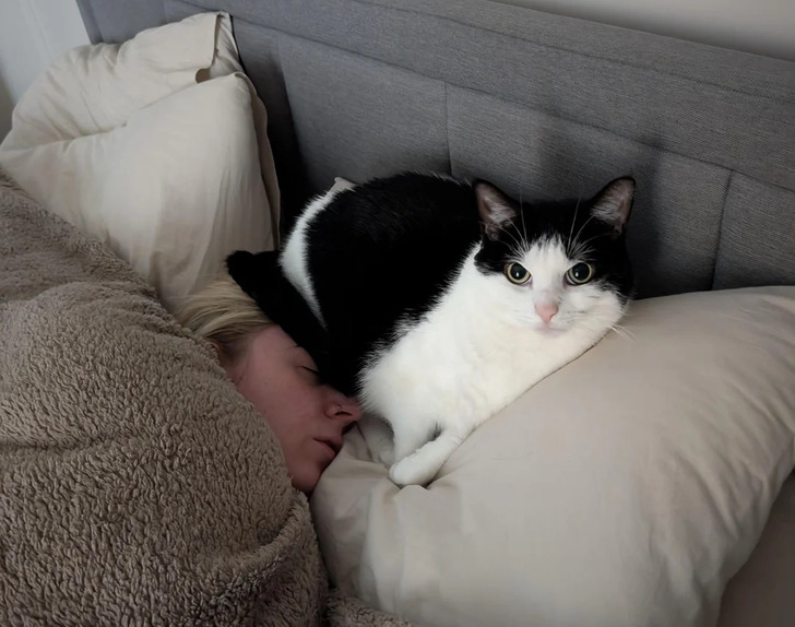 Los gatos siempre encuentran lugares peculiares para dormir. Y formas peculiares de demostrar su amor. Este felino sobresale en todo