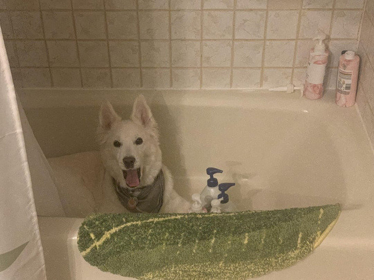 “Esta mañana mi esposo no encontraba a la perra para sacarla a pasear. Después de buscar por toda la casa, la encontró aquí. Tiene casi 12 años y jamás se había escondido en el baño”.