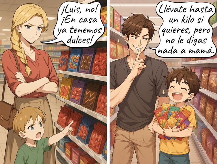 Incluso una ida al supermercado con el niño se convierte en un desafío: convencer a mamá de comprar algo es casi imposible, mientras que papá se lleva todo, aunque ya haya de sobra en casa.