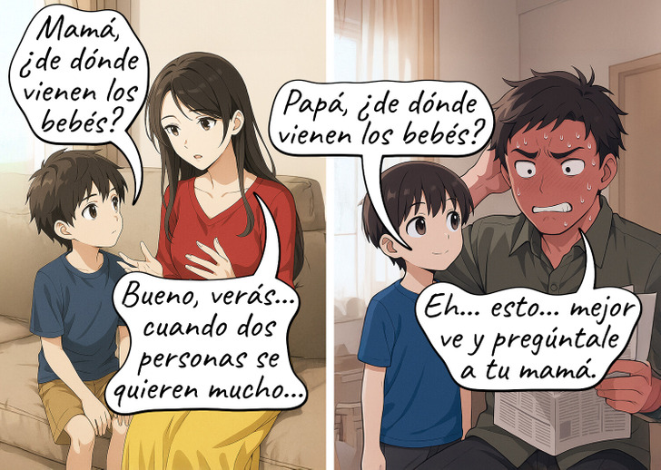 Para las preguntas difíciles, mamá siempre tiene una respuesta. Papá tampoco se queda atrás, aunque lo maneja a su manera.
