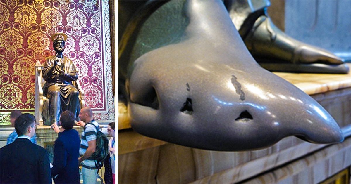 26. En la Basílica de San Pedro, los peregrinos desde hace siglos tocan el pie de esta estatua