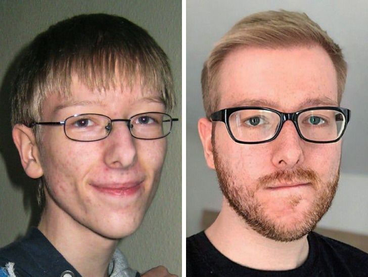 “Yo a los 18 y a los 22 años. La secundaria es una pesadilla. Pero perdí algunos kilos, cambié mi peinado y me dejé crecer una pequeña barba. Parece haber ayudado”