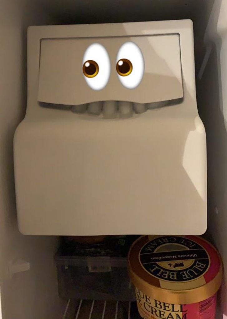 9. “Puse un huevo en el dispensador de hielo. Mi esposa me envió esta foto. La broma fue un éxito”