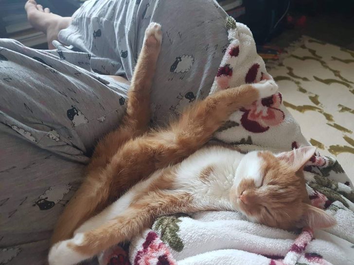 7. “Mi mamá me envió esta foto de nuestro gato durmiendo en una posición muy rara”