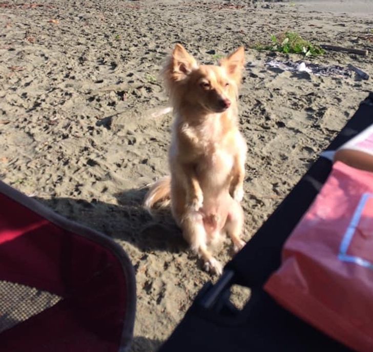 20. “Mi mamá me envió esta foto de su viaje de campamento. Su perro se sienta de una forma realmente extraña”