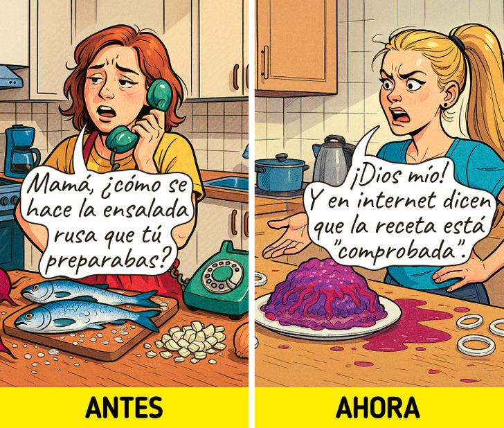 Hoy en día, parece que siempre hemos contado con la comodidad de los teléfonos inteligentes y la tecnología. Pero hace apenas 15 o 20 años, ni siquiera imaginábamos lo que sería pedir y pagar un taxi con solo un toque, o elegir comida y ropa por internet en lugar de ir a una tienda. Por eso decidimos crear estos cómics que muestran cómo los gadgets han transformado nuestra vida cotidiana.