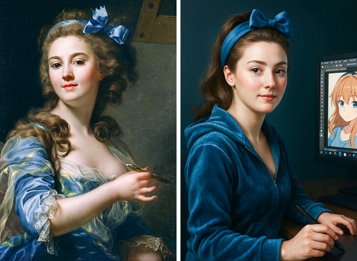 Estamos tan acostumbrados a ver a los personajes de la pintura clásica como figuras inmóviles de un pasado lejano, que rara vez los imaginamos de otra forma. Pero basta con pensar cómo serían en pleno siglo XXI, con un corte de cabello moderno, ropa con estilo y accesorios actuales, y ocurre la magia. Un noble severo se transforma en un programador con onda, mientras que una dama altiva parece sacada de las redes sociales. Este proyecto deja algo muy claro, hay muchas menos diferencias entre nosotros y los personajes de los cuadros antiguos de lo que creemos.