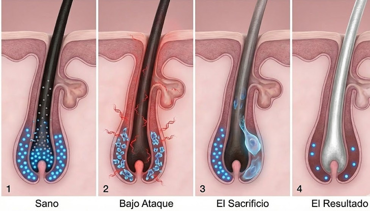 La cana, bajo esta nueva perspectiva científica, deja de ser un símbolo de descomposición y se transforma en un vestigio de protección. El cabello blanco es el costo que la estética tiene que asumir para conservar la seguridad del sistema. En su sabiduría evolutiva, el cuerpo antepone la erradicación de los peligros de cáncer a la vanidad del color.
