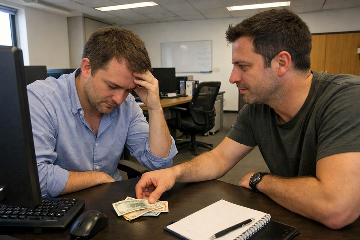 No se rió. No me juzgó. No me dio un discurso. Solo sacó su billetera y, mostrando una generosidad pocas veces vista, dejó unos billetes sobre el escritorio. Yo me quedé congelado.