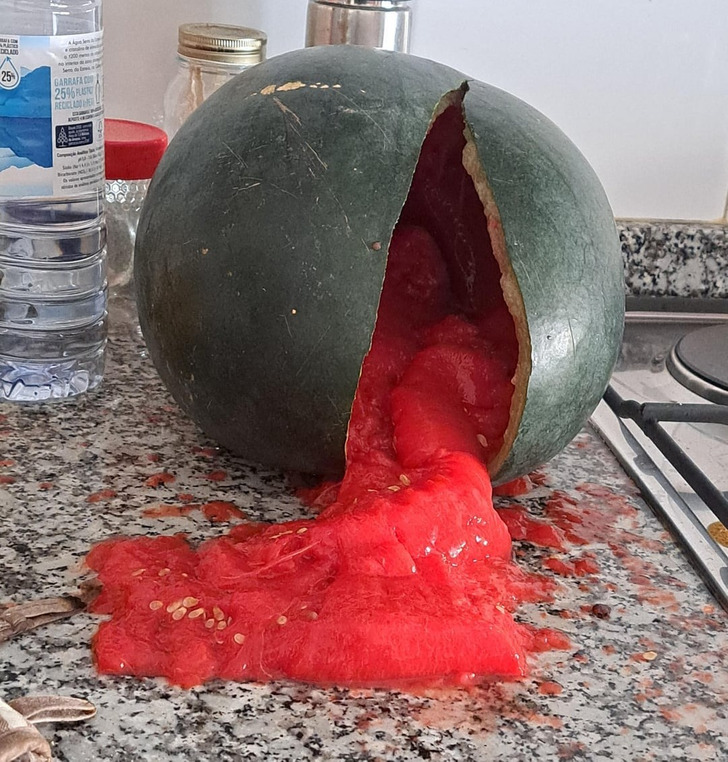 “La sandía explotó, ahora la cocina está toda salpicada”