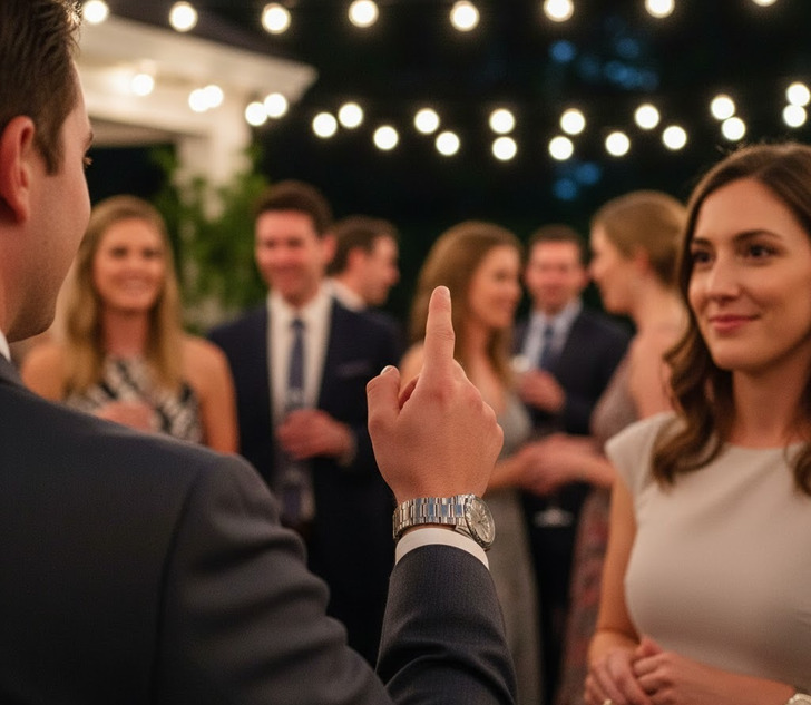 Luego, John se puso serio mientras le hacía un pequeño gesto a la organizadora del evento (Ashley) que estaba cerca “Mira, me abordan todo el tiempo así por mi negocio, lo entiendo, pero esta es mi casa y un evento privado”. Después, mirando a Ashley “Oye, ¿puedes tomarte un momento para verificar la lista de invitados? No estoy seguro de qué está pasando aquí. Gracias”.