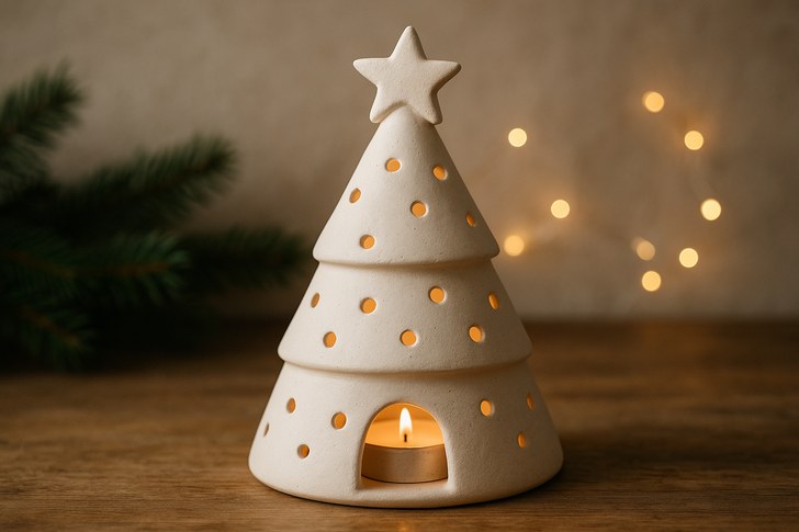 - Producción: Con arcilla de secado al aire o arcilla polimérica, colabore con los niños para hacer un cono de varias capas que simule un árbol. Es esencial hacer pequeños agujeros en las capas con un palillo para que la luz de la vela, que siempre debe ser manipulada por un adulto, pueda liberarse y producir una impresión mágica. Adorna el árbol con una estrella. Una vez decorada y seca, puede contener una vela LED para mayor seguridad o una de té, siempre bajo vigilancia de un adulto.