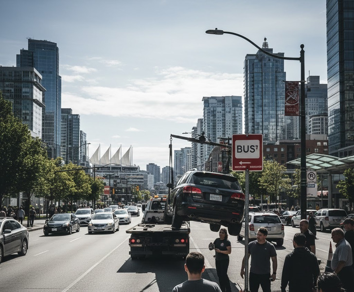 Resulta que se fue de fiesta con una amiga. Se encontraron con un grupo de 3 tipos, y decidieron irse a casa con ellos. Stephanie dejó que uno de esos 3 tipos fuera el conductor de mi carro nuevo. Cuando llegaron a la casa de uno de ellos, mi carro estaba estacionado en un lugar prohibido, y más tarde se lo llevó la grúa. Estaba estacionado en una parada de autobús en el centro de Vancouver.