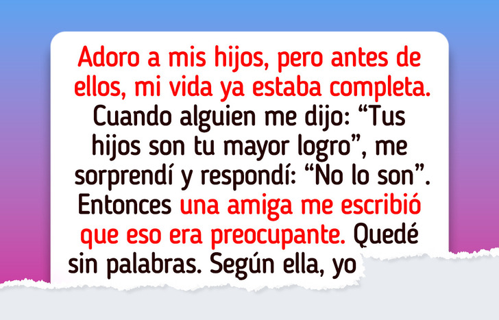 Para muchos padres y madres, la llegada de sus hijos supone el mejor momento de sus vidas. El día de su nacimiento, todo cambia, se enfocan en sus pequeños y se convierten en el centro de su universo. Todo gira en torno a ellos y no hay nada más importante. Sin embargo, para otros, su mundo ya estaba completo antes y, aunque adoran a sus hijos, no son su mayor logro. Este último es el caso de la historia que te contamos a continuación y de una madre que, al revelar su verdad, quedó en el centro de las críticas y de muchas miradas indiscretas.