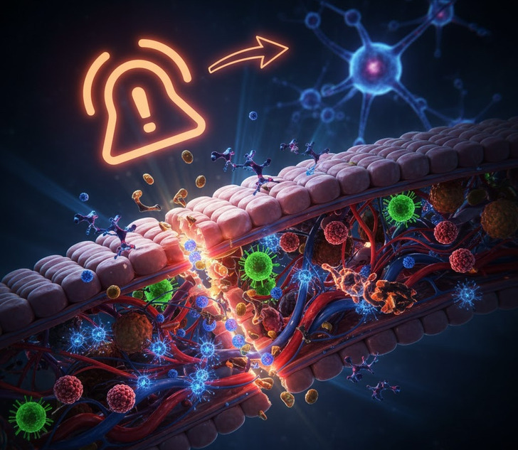 El intestino delgado tiene una capa de protección esencial. Cuando esta barrera se hace más débil —lo que se conoce como permeabilidad intestinal o "intestino con fugas“—, da paso a que las moléculas proinflamatorias y las toxinas atraviesen hacia el torrente sanguíneo, desde donde se propagan hasta el sistema nervioso.